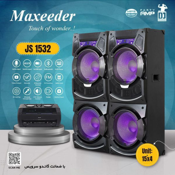 این دستگاه دارای ورودی های SD -USB -AUX -DVD- اپتیکال- میکروفون و خروجی Audio -Video است. دارای 2 سیستم صوتی که قابلیت کارکرد کاملا مجزا را هم دارند (دارای 2 بلوتوث و 2 رادیو). دارای 2 عدد ورودی USBکه یکی برای سیستم صوتی A و دیگری برای سیستم صوتی تصویری B می باشد. سیستم B قابلیت کنترل توسط ریموت کنترل را دارد. دارای میکروفون بی سیم، رقص نور و قابلیت کارائوکه (Karaoke) نیز می باشد.